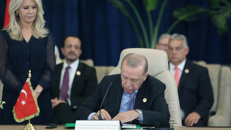 ABD Başkanı Donald Trump ve Mısır Cumhurbaşkanı Abdulfettah es-Sisi’nin eşbaşkanlığında düzenlenen Gazze’deki ateşkesin korunması ve barış amacıyla düzenlenen ‘Barış Zirvesi Niyet Beyanı İmza Töreni’nde Türkiye’yi Cumhurbaşkanı Tayyip Erdoğan temsil etti.