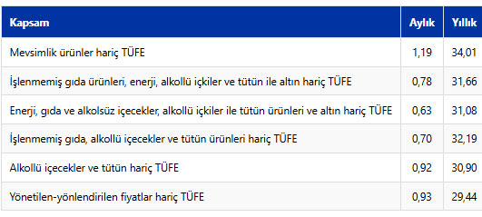 Özel kapsamlı TÜFE göstergeleri şöyle: