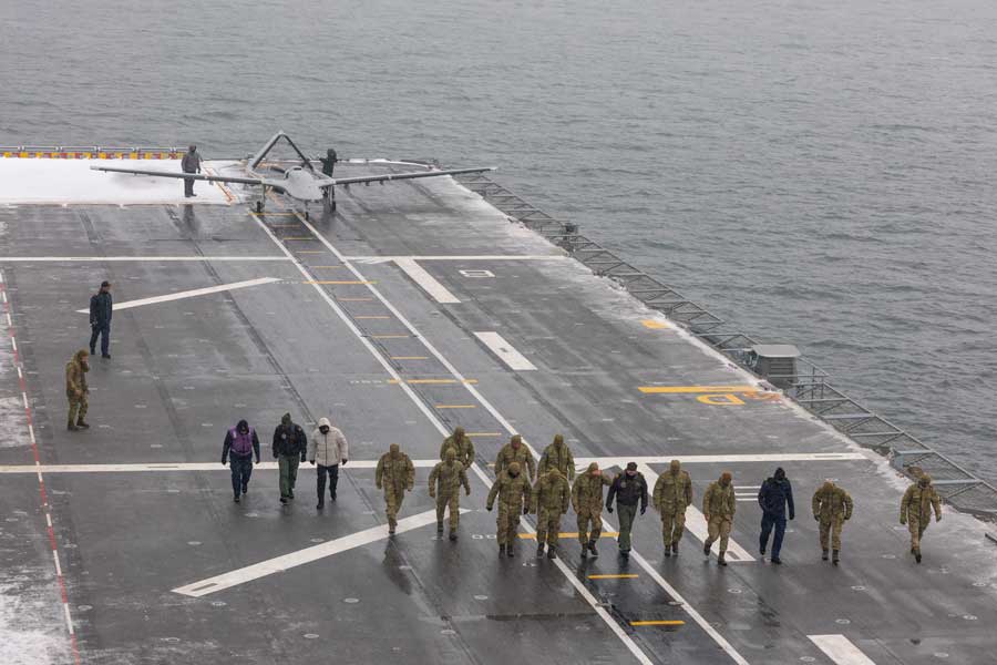 Tatbikatın gerçekleştirildiği Baltık Denizi’ndeki zorlu kış şartlarına rağmen TCG ANADOLU’nun kısa pistinden otonom olarak havalanan Bayraktar TB3, havacılık kabiliyetlerini müttefik ülke temsilcilerine sergiledi. Şiddetli rüzgârın deniz üzerinde yarattığı türbülanslı ortama rağmen kararlı uçuş karakteristiğini koruyan milli SİHA, uçuş görevini başarıyla tamamlayarak şiddetli soğuk nedeniyle buz tutan pisti temizlenen TCG ANADOLU’ya otonom iniş gerçekleştirdi. Tatbikata katılan savaş uçakları ve helikopterlerin uçamadığı zorlu hava koşullarında şartlarında uçabilen tek hava aracı olan Bayraktar TB3, uçuş gösterimini takip eden müttefik ülke temsilcilerinden tam not aldı.