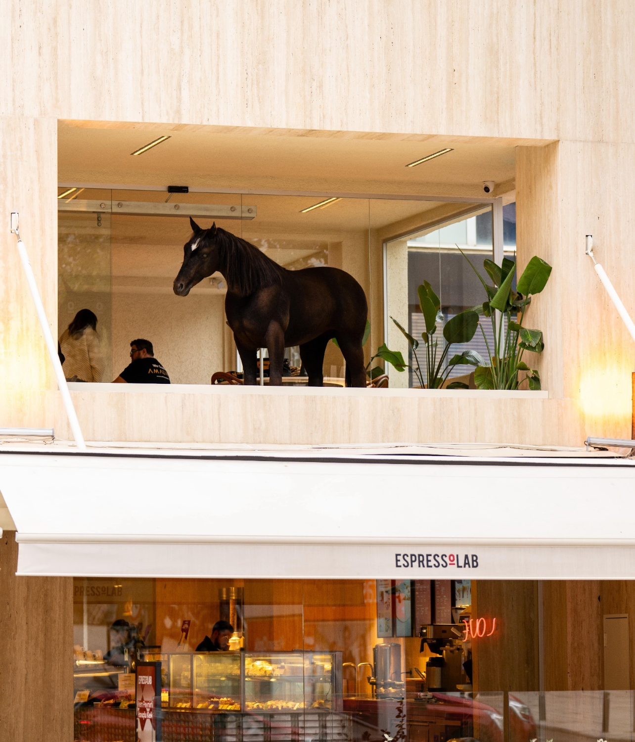 Espressolab, teknoloji ile sanatı buluşturdu. “Kahve” adını verdiği canlıya benzer bir atı Bağdat Caddesi mağazasında sergilemeye başladı. Yayalar, araç sürücüleri, mağazanın üst katından dışarı bakan Kahve’yi görünce şaşkınlıklarını gizleyemedi. Bu ilginç görüntüler, şirketin sosyal medya hesabından “Dokunmayın, ısırır!” başlığıyla paylaşıldı. Paylaşım, animatronik at Kahve kadar büyük ilgi gördü