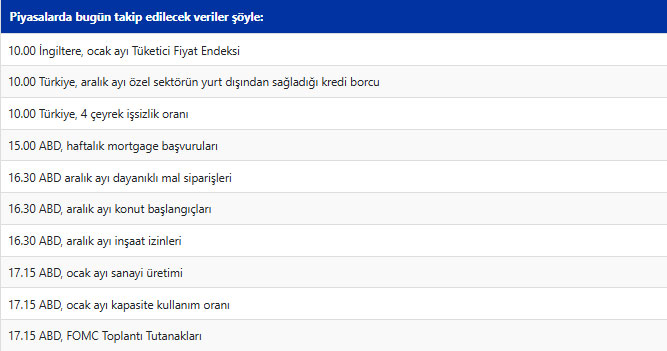 Analistler, bugün yurt içinde işsizlik oranı ve özel sektörün yurt dışından sağladığı kredi borcunun, yurt dışında ise İngiltere’de enflasyon ile ABD’de Federal Açık Piyasa Komitesi (FOMC) toplantı tutanakları başta olmak üzere yoğun veri gündeminin takip edileceğini belirterek, teknik açıdan BIST 100 endeksinde 14.100 ve 14.000 puanın destek, 14.300 ve 14.400 puanın ise direnç konumunda olduğunu kaydetti.