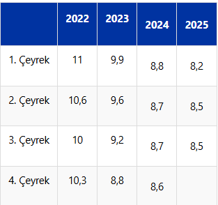 Buna göre çeyrekler itibarıyla mevsim etkilerinden arındırılmış işsizlik oranları şöyle: