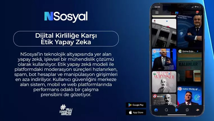 NSosyal’in teknolojik altyapısında yer alan yapay zekâ, işlevsel bir mühendislik çözümü olarak kullanılıyor. Etik yapay zekâ modeli ile platformdaki moderasyon süreçleri hızlanırken, spam, bot hesaplar ve manipülasyon girişimleri en aza indiriliyor. Kullanıcı güvenliğini merkeze alan sistem, mobil ve web platformlarında performans odaklı bir çalışma prensibini de gözetiyor.