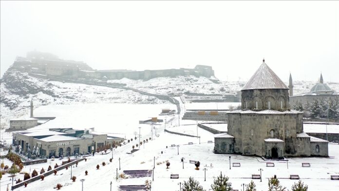 Beyaza bürünen Kars Kalesi ve şehir merkezindeki tarihi yapılar güzel görüntü oluşturdu.