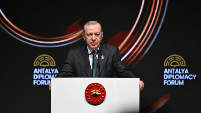 Cumhurbaşkanı Recep Tayyip Erdoğan’ın “Yarını Kurgulamak, Belirsizlikleri Yönetmek” temasıyla düzenlenen 5. Antalya Diplomasi Forumu’nun açılışında yaptığı konuşma, Türkçe, İngilizce ve Arapça yayımlandı.