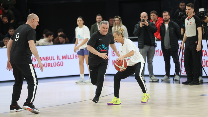 Eski milli basketbolcular Harun Erdenay, Ömer Onan, Bahar Çağlar Ökten ve Nilay Kartaltepe ile finalist takımların oyuncularının yer aldığı karma takımlarla oynanan maçta Bakan Bak, attığı basketlerle dikkati çekti.